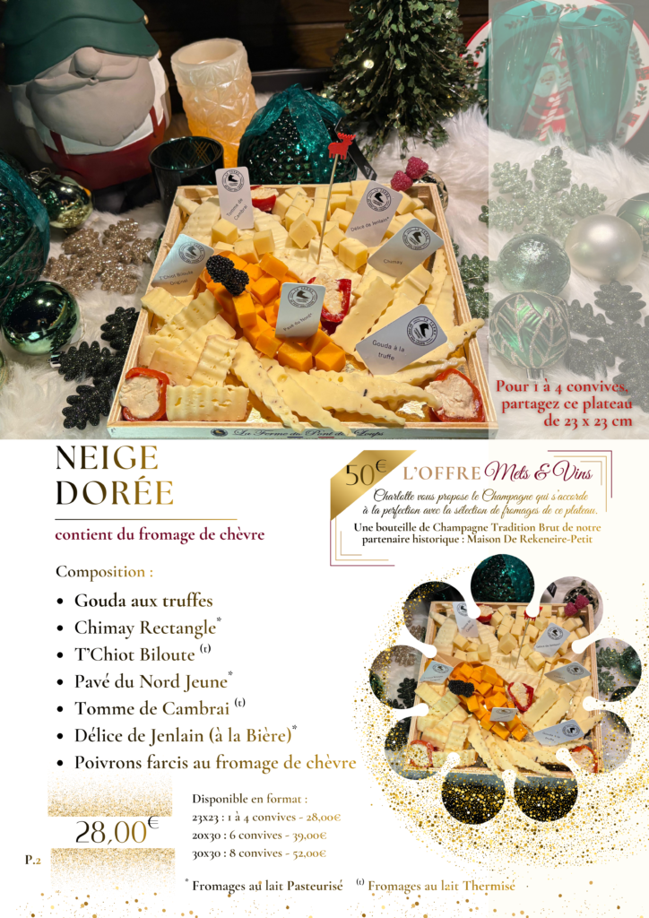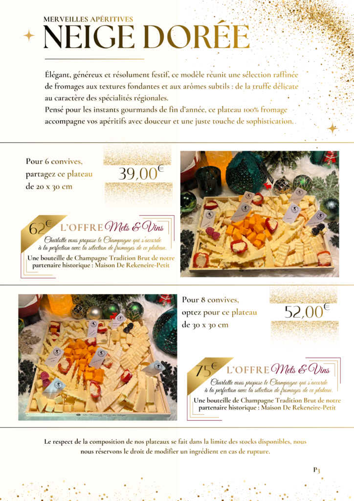 𝐋𝐞𝐬 𝐌𝐞𝐫𝐯𝐞𝐢𝐥𝐥𝐞𝐬 𝐀𝐩𝐞́𝐫𝐢𝐭𝐢𝐯𝐞𝐬 : avec le » Neige Dorée » 100% Fromages et » Le Festif » la version Fromages & Charcuterie