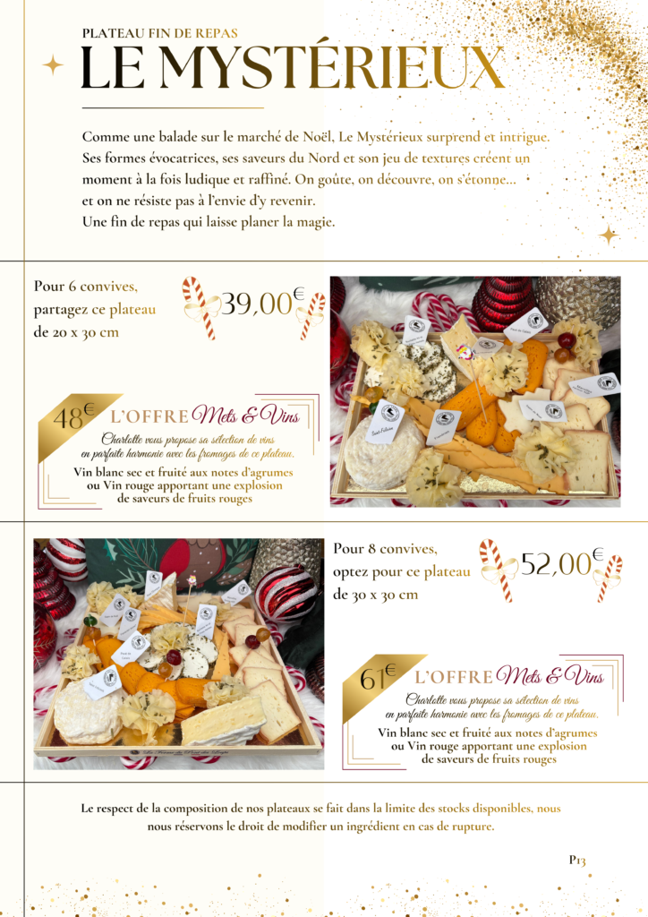Retrouvez notre collection de plateaux dans notre Book de Noël consultable dans nos boutiques de Saint-Aubin, Maubeuge et Valenciennes ou en cliquant ici : Book de fin d’année 2025 !