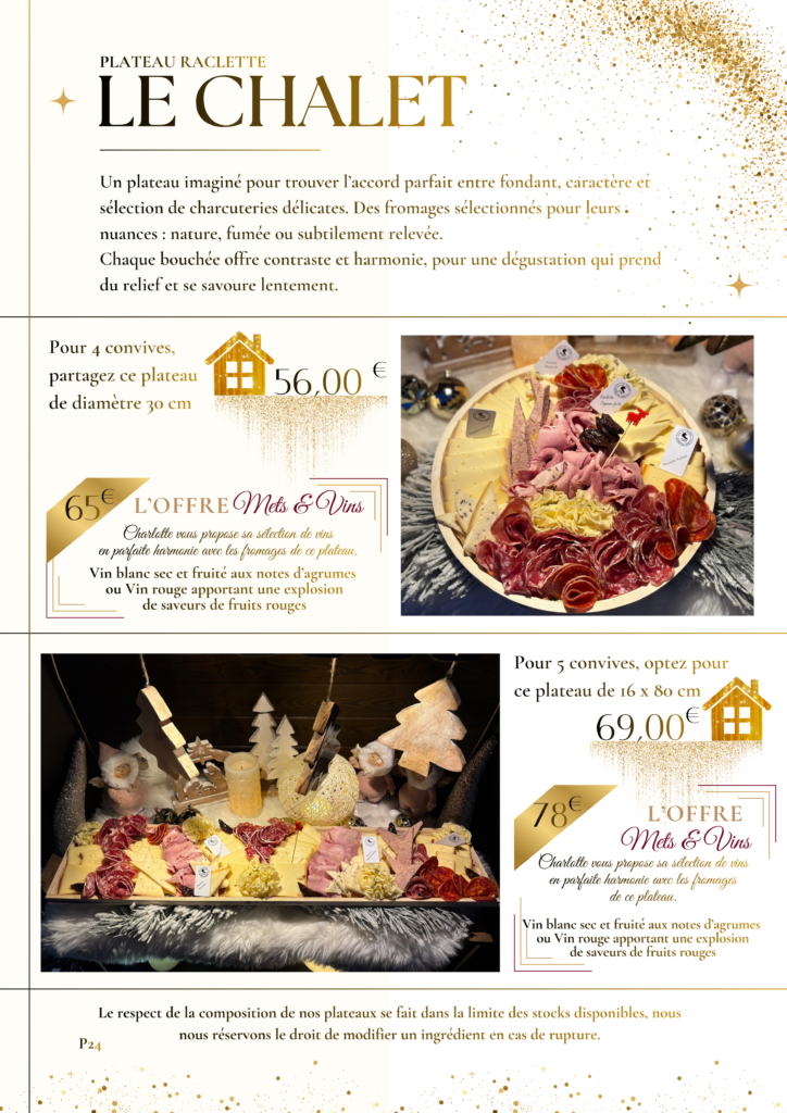 – » Le Chalet » si vous préférez la raclette Fromages & Charcuterie
